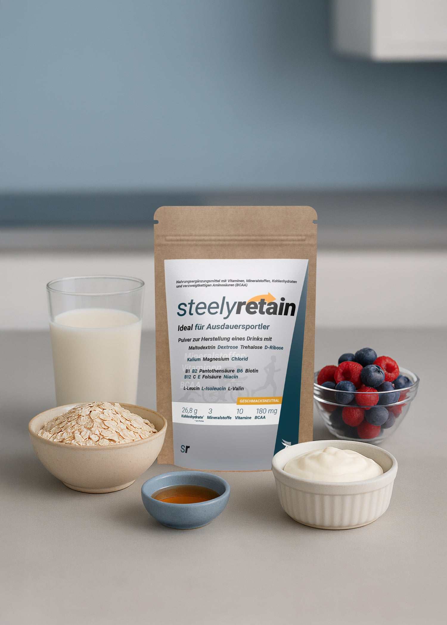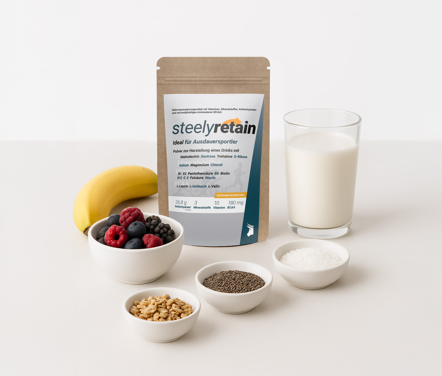 20 g hochwertiges Protein + 5 g BCAA aus SteelyRetain