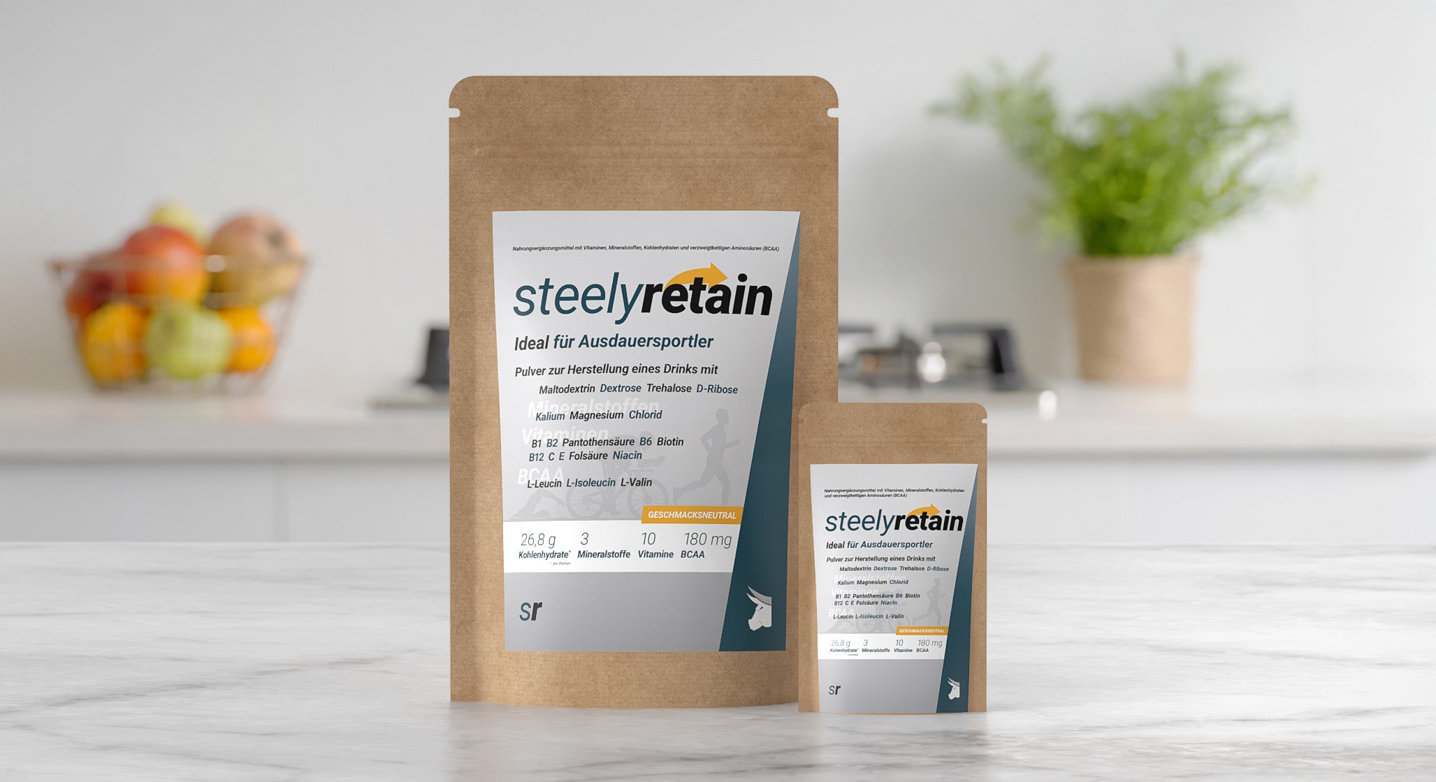 SteelyRetain erhältst du in der praktischen 30g Variante für unterwegs, sowie im sehr ergiebigen 920g Beutel zum Wiederverschließen für Zuhause.