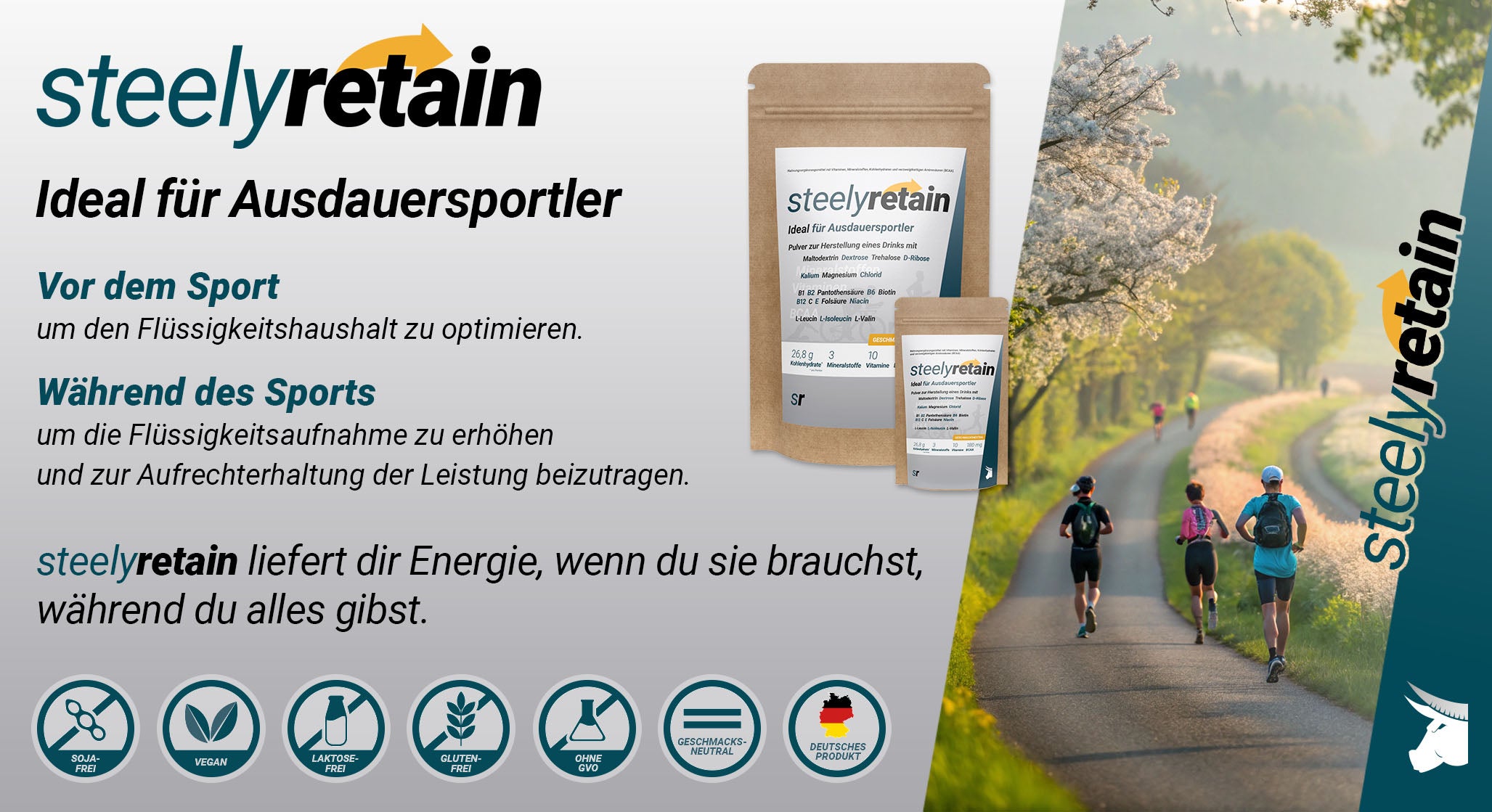 SteelyRetain wurde speziell für Ausdauersportler wie Läufer, Triathleten und Radsportler entwickelt. Es eignet sich sowohl für ambitionierte Freizeitsportler als auch für Wettkampfathleten, die ihre Energieversorgung, Muskelfunktion und Regeneration gezielt unterstützen möchten. Auch bei hohem Trainingsvolumen und längeren Belastungen ist es eine zuverlässige Ergänzung zur sportlichen Ernährung.